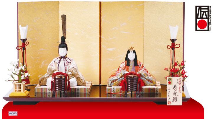 ○明るい木肌の飾り台に金屏風で華やかなお節句を演出します。