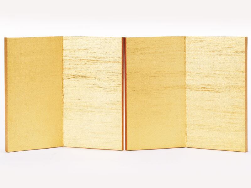 ○丸みを帯びたやさしいフォルムが可愛らしいお雛様。シンプルな金屏風と組み合わせた、コンパクトサイズの飾りです。
