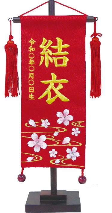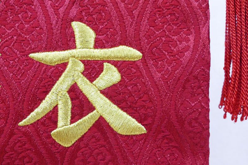 ○お子様のお名前と生年月日は、赤地に映える金色の刺繍で入ります。