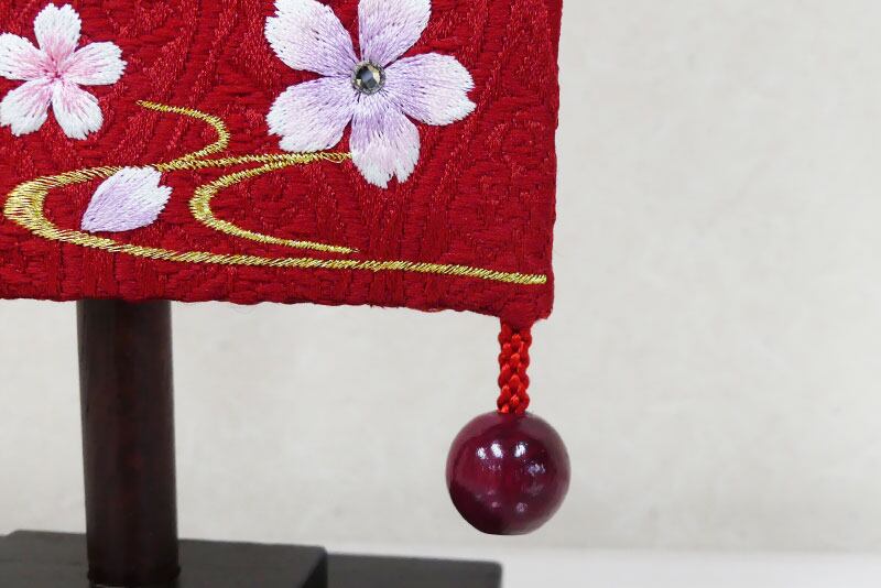 ○お名前旗を華やかに彩る飾りには、赤い色の房と飾り玉があしらわれています。