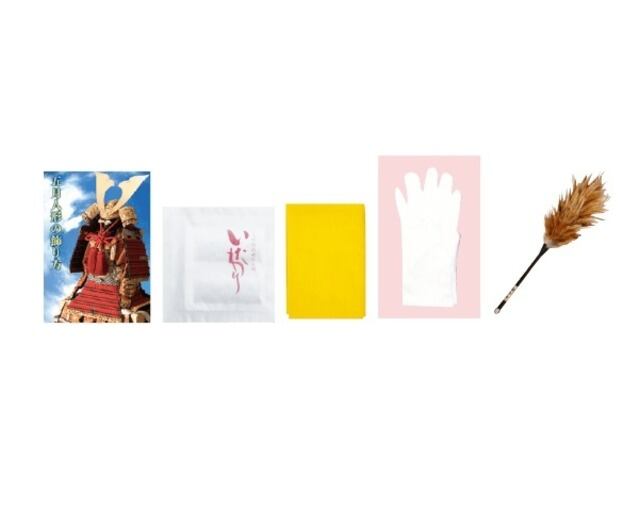 オルゴール付きお名前木札、陣羽織、お手入れセット、グリーンの毛氈