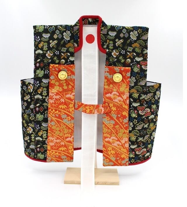 ○長鍬形に、たすき・獅子文様の吹き返し。