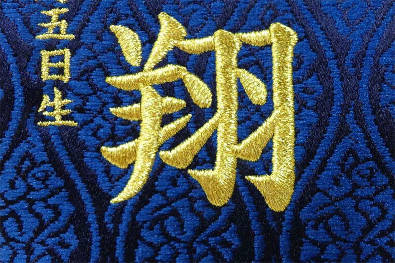 ○お子様のお名前と生年月日は、紺地に映える金色の刺繍で入ります。