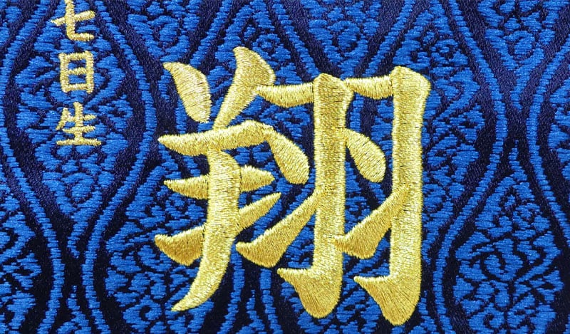 ○お子様のお名前と生年月日は、紺地に映える金色の刺繍で入ります。