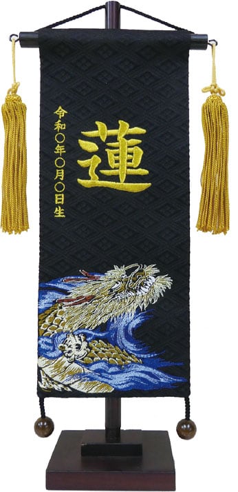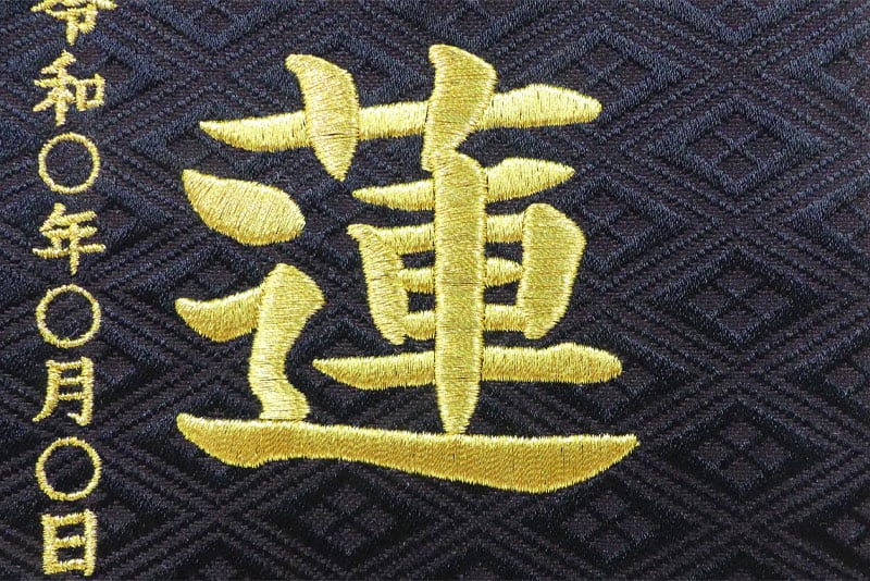 ○お子様のお名前と生年月日は、黒地に映える金色の刺繍で入ります。