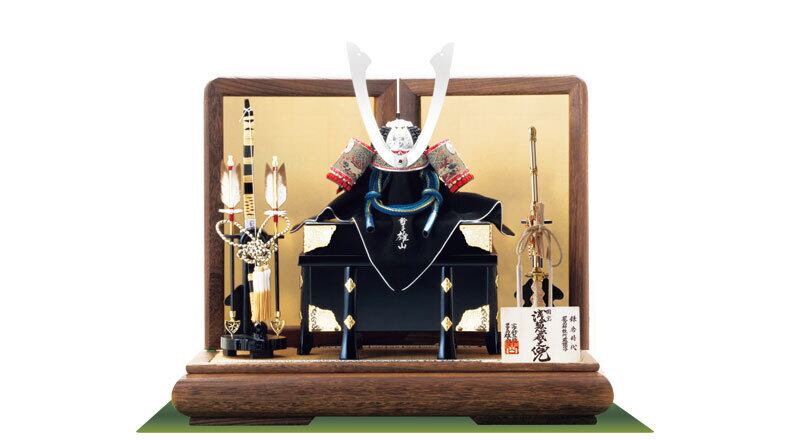 ・兜の忍び緒には威しに合わせ浅葱色を使用し、取り扱い のとても楽な焼桐の台・屏風で落ち着いた兜飾りセットです。