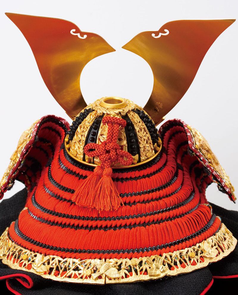 ・赤糸威しの兜裾には、竹雀の細かな飾り金物が施され、とても綺麗です。鉢は矧ぎ合わせ鉢を使用。