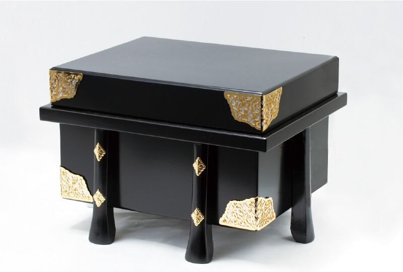 ・お櫃は黒漆塗りに総透かし金具を使用しています。